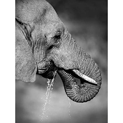Wee Blue Coo African Elephant Drinking Black White Art Print Poster Wall Decor 12X16 Inch