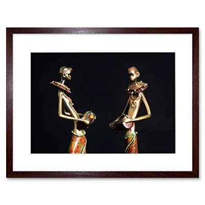 Wee Blue Coo African Figurines Tribe Drum Art Framed Wall Print