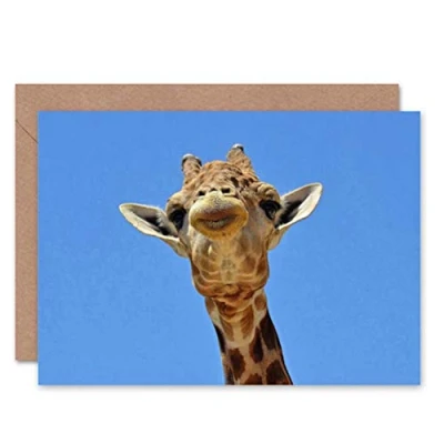 Wee BLUE Coo AFRICAN GIRAFFE HEAD PORTRAIT SKY BIRTHDAY BLANK GREETINGS CARD
