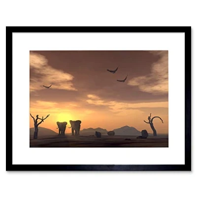 Wee Blue Coo African Plain Savannah Ethereal Elephants Home Framed Wall Art Print