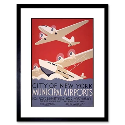 Wee Blue Coo Airplane Aeroplane New York La Guardia Seaplane Picture Framed Wall Art Print