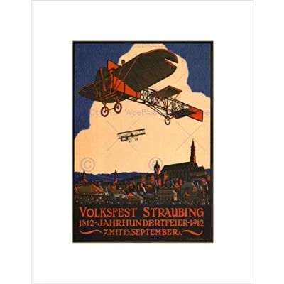Wee Blue Coo Airshow Aviation Biplane Centenary Germany Vintage Ad Wall Art Print