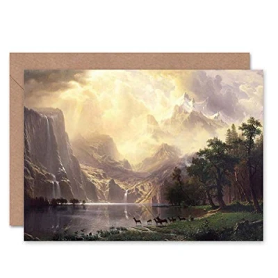 Wee Blue Coo ALBERT BIERSTADT AMONG SIERRA NEVADA MOUNTAINS OLD PAINTING GREETING CARD