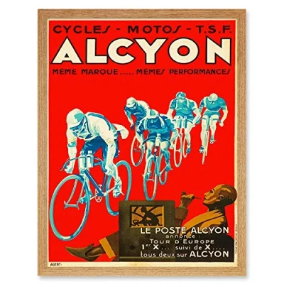 Wee Blue Coo Alcyon Cycles Event Tour Europe Art Print Framed Poster Wall Decor 12x16 inch