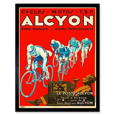 Wee Blue Coo Alcyon Cycles Event Tour Europe Art Print Framed Poster Wall Decor 12x16 inch