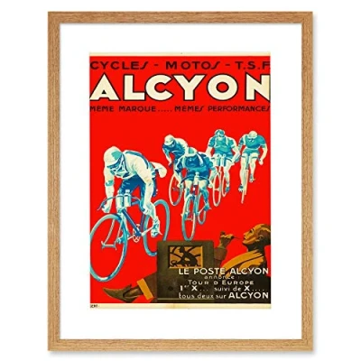 Wee Blue Coo Alcyon Cycles Event Tour Europe Artwork Framed Wall Art Print 12X16 Inch