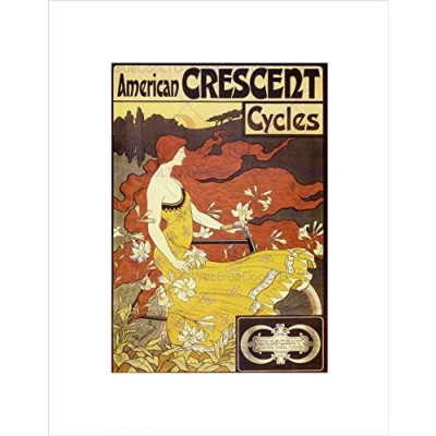 Wee Blue Coo Alphonse Mucha American Crescent Cycles Bump Wall Art Print