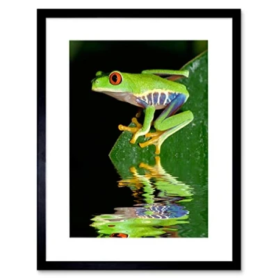 Wee Blue Coo Amazon Frog Classic Reflection Green Orange Framed Wall Art Print