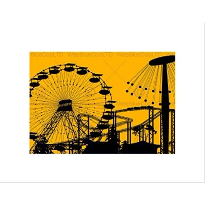 Wee Blue Coo Amusement Park Yellow Sky Sunset Art Picture Wall Print