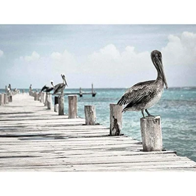 Wee Blue Coo Animal Bird Pelicans Ocean Pier Art Print Poster Wall Decor 12X16 Inch