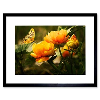 Wee Blue Coo ANIMAL INSECT BUTTERFLY FLOWER YELLOW BLACK FRAMED ART PRINT PICTURE B12X4734