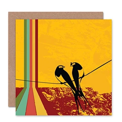 Wee Blue Coo ANIMAL LOVE ROMANCE VALENTINES SWALLOW FUNKY GRUNGE BLANK BIRTHDAY CARD