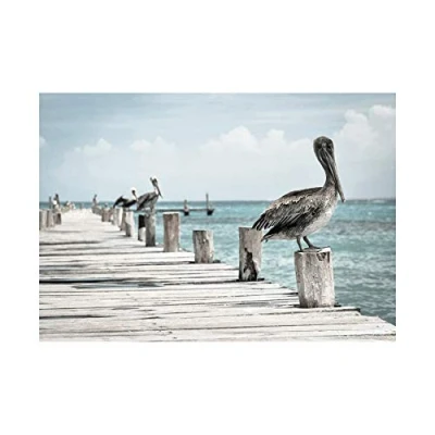 Wee Blue Coo Animal Photo Bird Pelicans Ocean Pier Wall Art Print