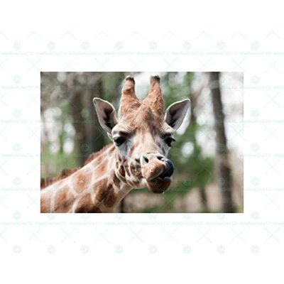 Wee Blue Coo Animal Photo Giraffe Licking Nostril Wall Art Print