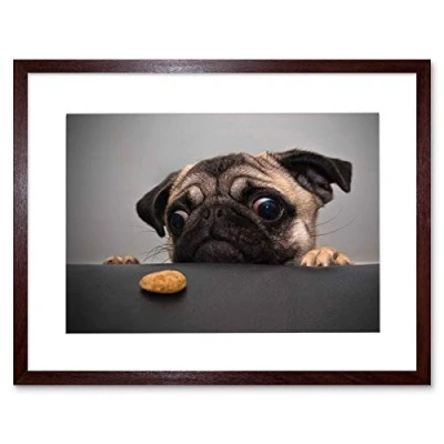 Wee Blue Coo Animal Photo Portrait Pug Dog Treat Food Eyes Cute Picture Framed Wall Art Print