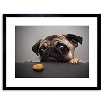 Wee Blue Coo Animal Photo Pug Dog Treat Food Eyes Cute Framed Wall Art Print