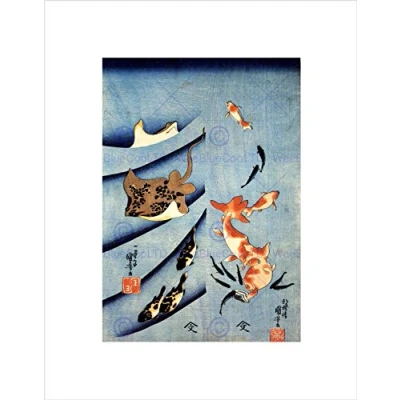 Wee Blue Coo Animals Fish Stingray Carp Utagawa Kuniyoshi Japan Wall Art Print