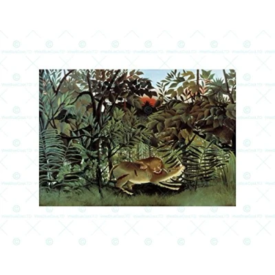 Wee Blue Coo Animals Rousseau Hungry Lion Jungle Painting Wall Art Print