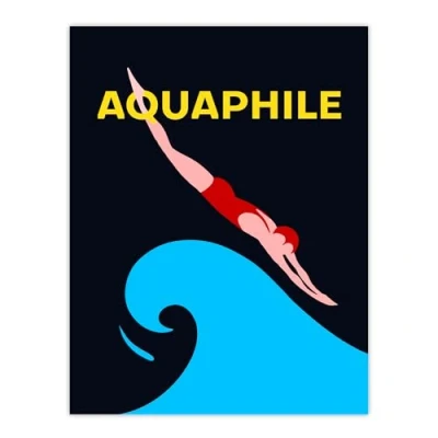 Wee Blue Coo Aquaphile Water Lover Swimmer Diver Bold Yellow Graphic Extra Large XL Wall Art Poster Print
