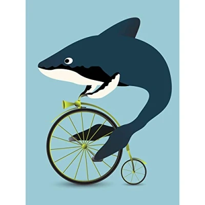 Wee Blue Coo Art Kids Nursery Shark Penny Farthing Funny Fish Bedroom Canvas Print