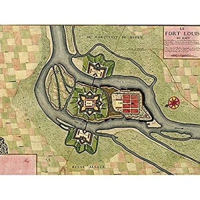 Wee Blue Coo Art Map Old Vintage Fort Louis Plan Rhine River Farmland Large Print Poster Wall Decor 18x24 inch