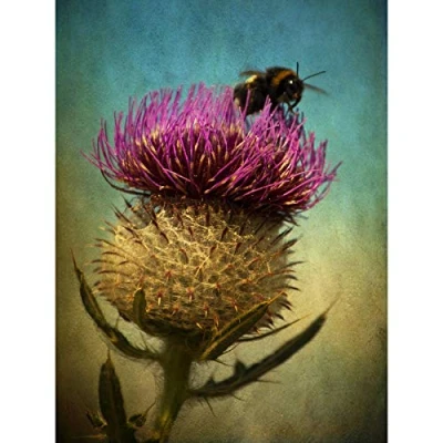 Wee Blue Coo Art Photo Bumble Bee Thistle Flower Scotland Canvas Print