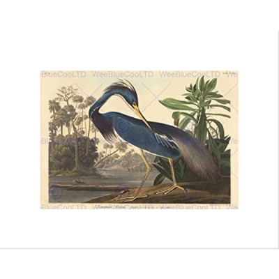 Wee Blue Coo AUDUBON AMERICAN LOUISIANA HERON FRAMED ART PRINT MOUNT B12X5250