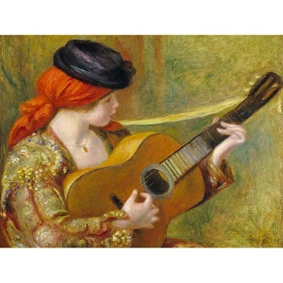 Wee Blue Coo Auguste Renoir French Young Spanish Woman Guitar Old Painting Art Print Poster Wall Decor 12X16 Inch