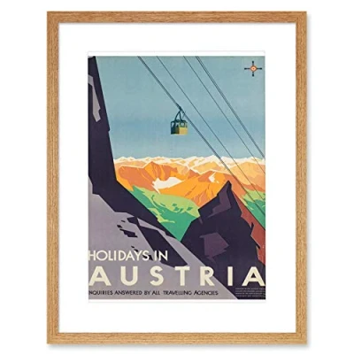 Wee Blue Coo Austria Travel Ski Lift Alpine Artwork Framed Wall Art Print 12X16 Inch