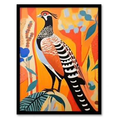 Wee Blue Coo Autumn Pheasant Bird Portrait Vibrant Folk Art Oil Painting Orange Red Patterns Artwork Framed Wall Print A4