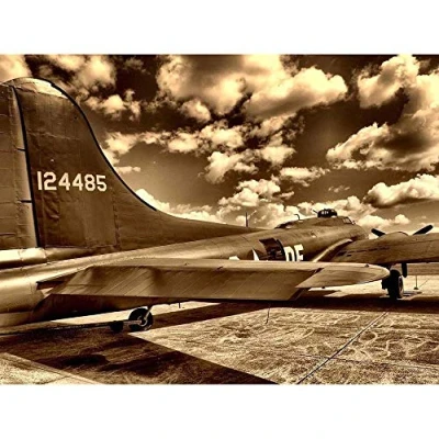 Wee Blue Coo B 17 Old Vintage Aeroplane War Sepia Art Print Poster Wall Decor 12X16 Inch