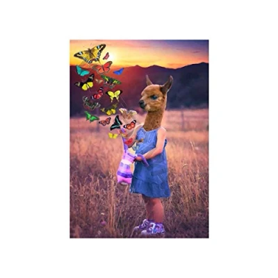 Wee Blue Coo Baby Llama Butterflies Wall Art Print
