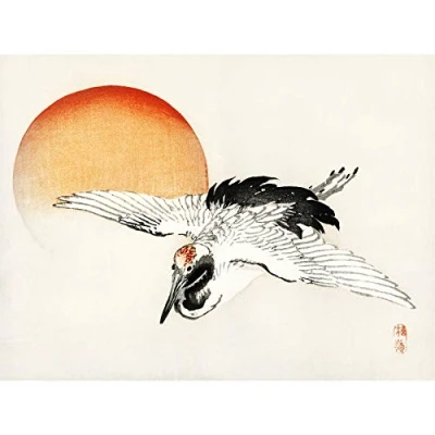 Wee Blue Coo Bairei Flying Egret Japanese Premium Wall Art Canvas Print 18X24 Inch