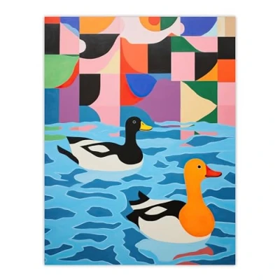 Wee Blue Coo Bathtime Buddies Vibrant Oil Painting Abstract Bath Ducks in Water Large Wall Art Poster Print Thick Paper 18X24 Inch