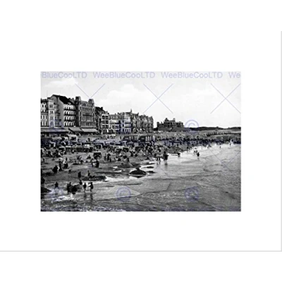 Wee Blue Coo Beach At High Water Ostend Belgium Vintage Old BW Wall Art Print