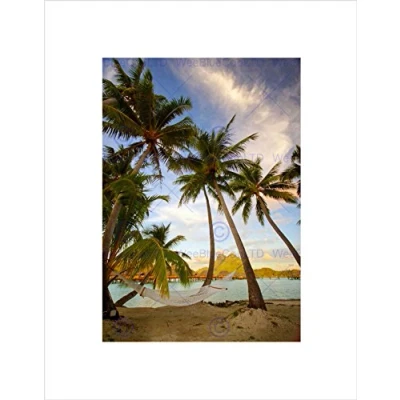 Wee Blue Coo BEACHES CULTURAL LANDSCAPE BORA TROPICAL HAMMOCK PALM TREE FRAMED PRINT B12X4748