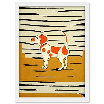 Wee Blue Coo Beagle Dog illustration Springer Orange on Mustard Spaniel Artwork Framed A3 Wall Art Print