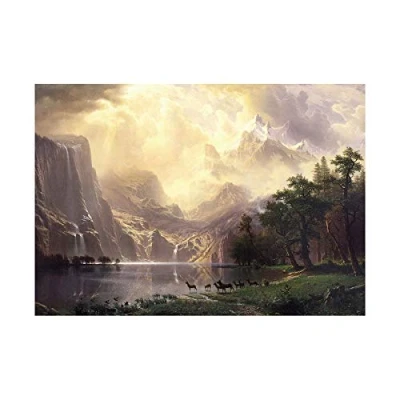 Wee Blue Coo Bierstadt Among Sierra Nevada Mountains Painting Wood Wall Art Print