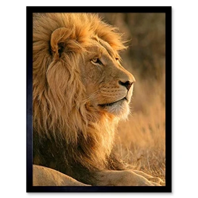 Wee Blue Coo Big African Lion Sitting Sun Art Print Framed Poster Wall Decor 12X16 Inch