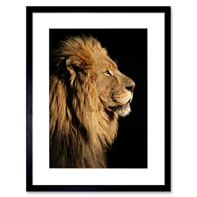 Wee Blue Coo Big Male African Lion Portrait Art Picture Framed Wall Print