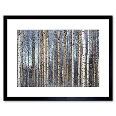 Wee Blue Coo Birch Forest Trees Silver Art Framed Wall Print