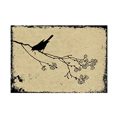 Wee Blue Coo Bird Branch Silhouette Beige Black Flowers Photo Picture Wall Art Print