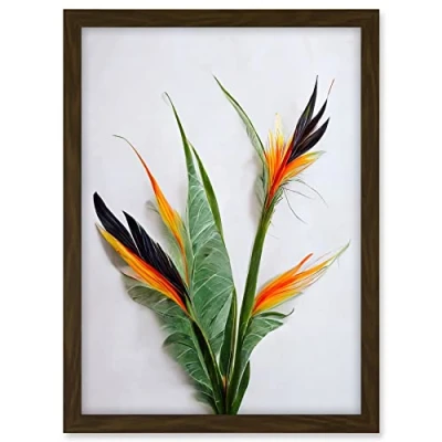 Wee Blue Coo Bird of Paradise Stem Leaves and Flowers Tropical Plant Botanical Artwork Framed A3 Wall Art Print