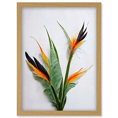 Wee Blue Coo Bird of Paradise Stem Leaves and Flowers Tropical Plant Botanical Artwork Framed Wall Art Print A4