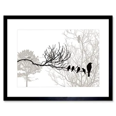 Wee Blue Coo Birds Silhouette Branch Illustration Black White Framed Art Print Mount B12X9696