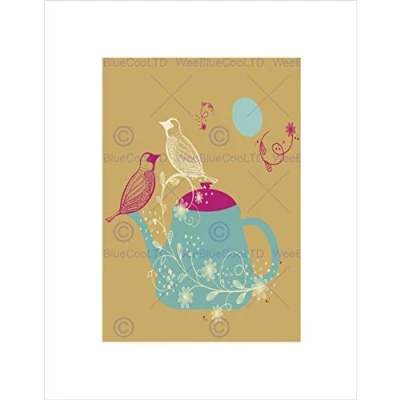 Wee Blue Coo Birds Teapot Flowers Illustration Art Picture Wall Print