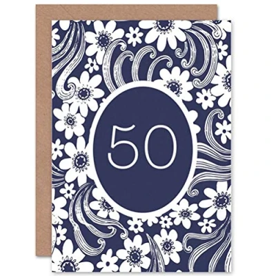 Wee Blue Coo BIRTHDAY 50 YEAR FLOWERS FLORAL ORNATE ART GREETINGS GREETING CARD GIFT