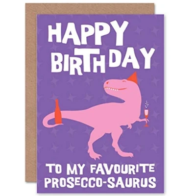 Wee Blue Coo Birthday Happy Fun Dinoasaur Alcohol Prosecco saurus Gift Sealed Greeting Card Plus Envelope Blank inside