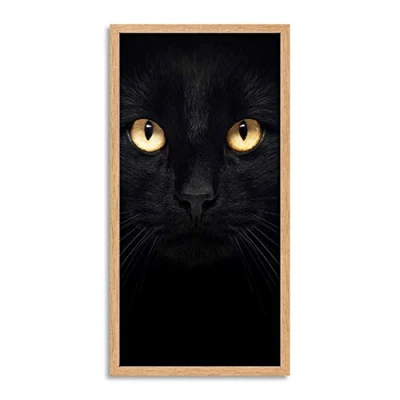 Wee Blue Coo Black Cat Face Yellow Eyes Close Up Long Panel Framed Wall Art Print