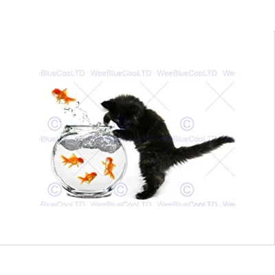 Wee Blue Coo Black Kitten Cat Goldfish Bowl Art Picture Wall Print